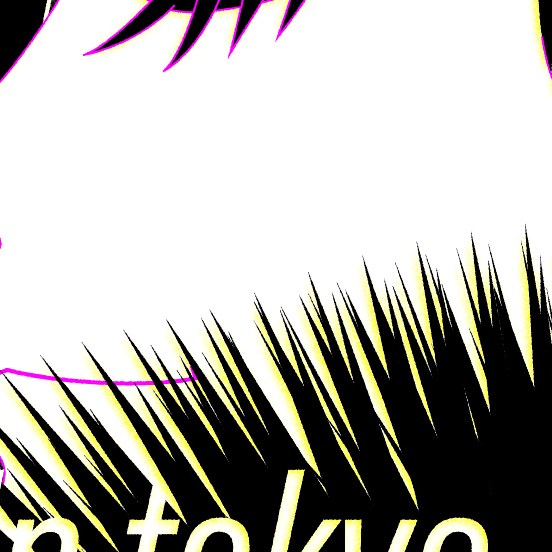 黄色を少し版ズレさせたり、全体にもやもやフィルターをかけたりして、レトロ感を演出しています。